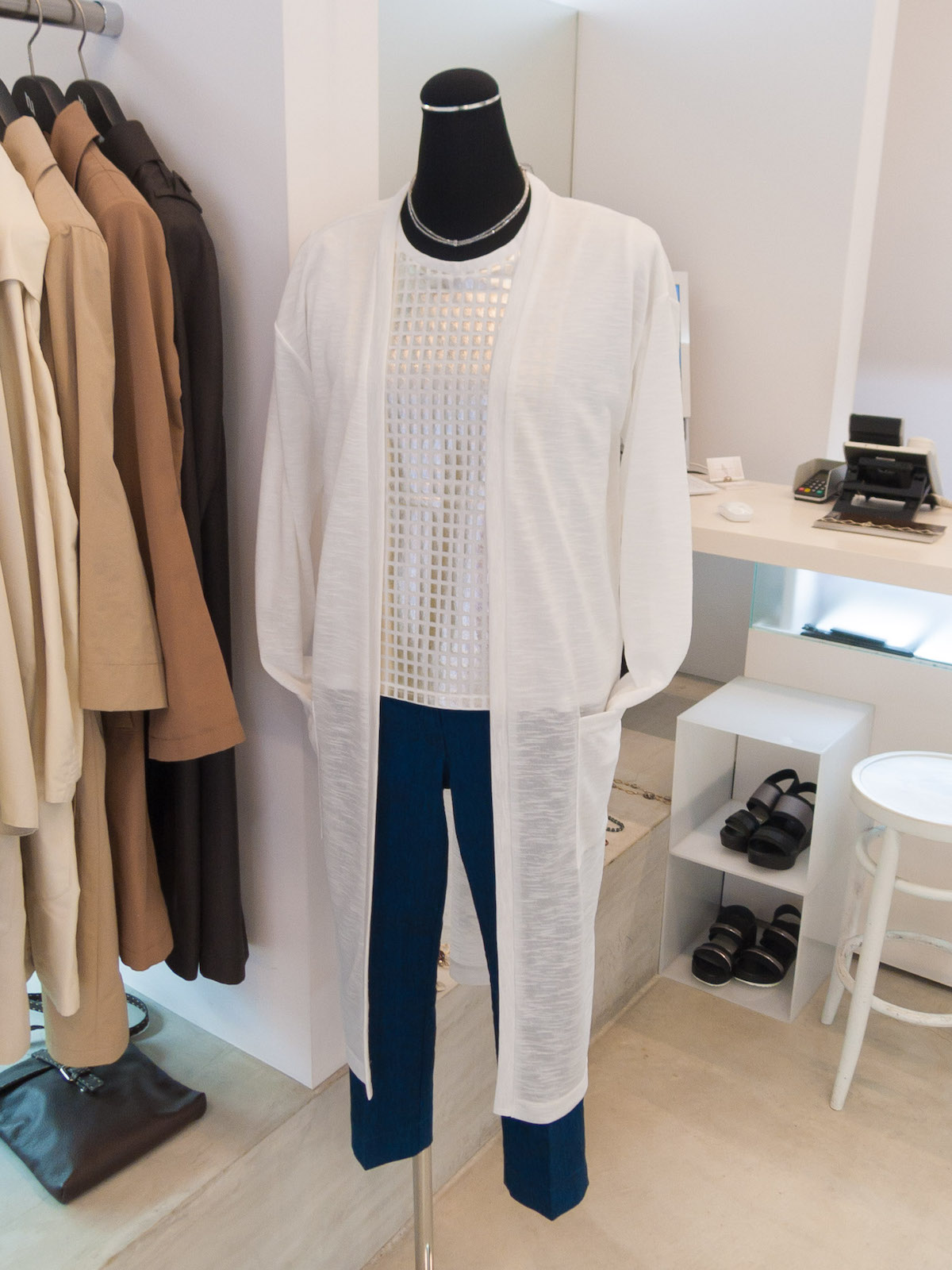 2017/04/24 ディスプレイ(広尾店) 4月24日のショップディスプレイを紹介します。 コーディネートの際のご参考にどうぞ。 ロングカーディガン:41,040.- カットソー:28,080.- コットンパンツ:28,080.- ネックレス:9,180.- カットソー:34,560.- パンツ:25,920.- コットンストール:8,640.- ポシェット:19,440.- 帽子:10,800.- ロングカーディガン:41,040.- カットソー:23,760.- 七分丈パンツ:38,880.- ネックレス:14,040.- ワンピース:54,000.- ネックレス:9,720.- ジャケット:51,840.- ブラウス:38,880.- パンツ:28,080.- ※表示は全て上代価格となります。 Today's Display 2017春夏, display, 広尾店 2017/04/22 ディスプレイ(広尾店) 2017/04/25 ディスプレイ(広尾店) トラックバックURL: https://www.hiromiyoshida.co.jp/brands/display_170424/trackback/
