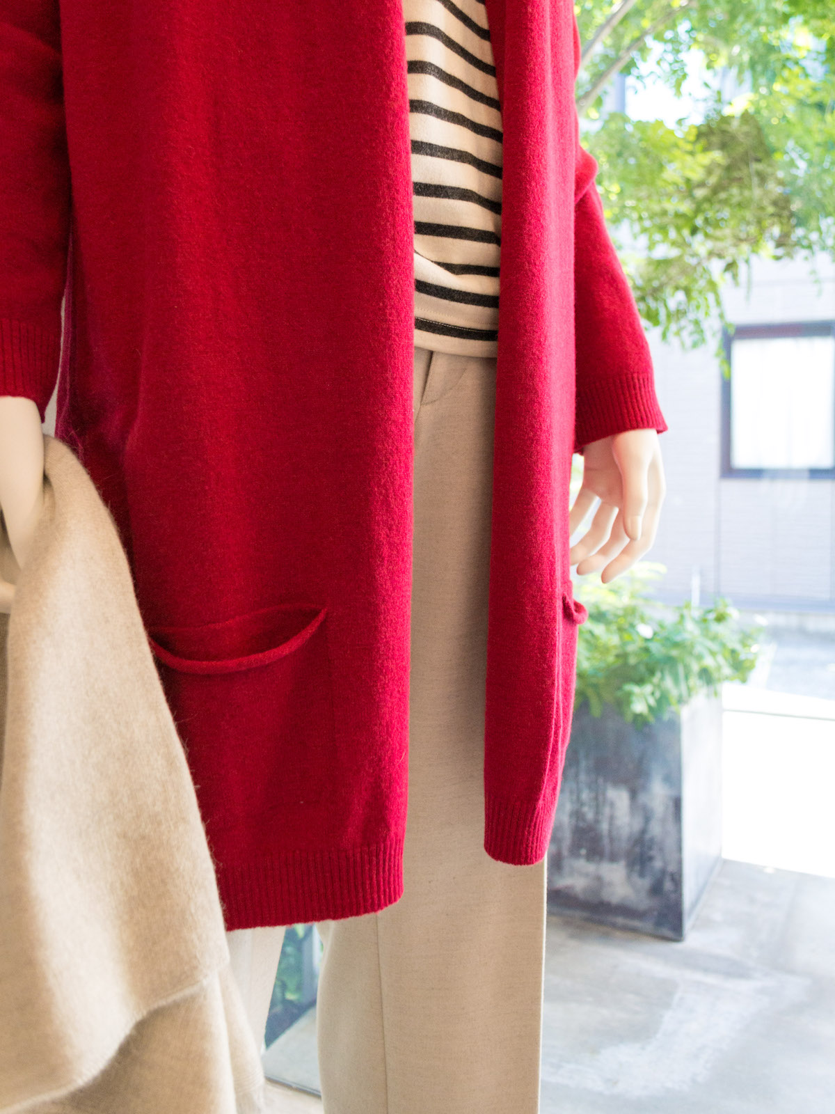 ロングカーディガンはコーディネートしやすい一着。持っていると便利です。