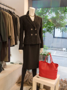 2017/11/28 ディスプレイ(広尾店) 11月28日のショップディスプレイを紹介します。 コーディネートの際のご参考にどうぞ。 コート:129,600.- カットソー:36,720.- パンツ:32,400.- 軽く中綿入りのコートの衿は立ち衿で女性らしさを感じさせます。 スーツ:129,600.- ネックレス:9,720.- バッグ:129,600.- 光沢のあるジャケットとタイトスカートのスーツ。お集まりの多いこの時期のお出かけ用に! ※表示は全て上代価格となります。 Today's Display 2017-18秋冬, display, 広尾店 2017/11/27 ディスプレイ(広尾店) 2017/11/30 ディスプレイ(広尾店) トラックバックURL: https://www.hiromiyoshida.co.jp/brands/display_171128/trackback/