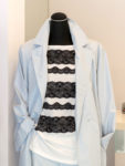 少し張り感のあるストライプのサッカー生地で、短めの着丈も使い勝手がよく、ワイドパンツやスカートの上に羽織りものとして。