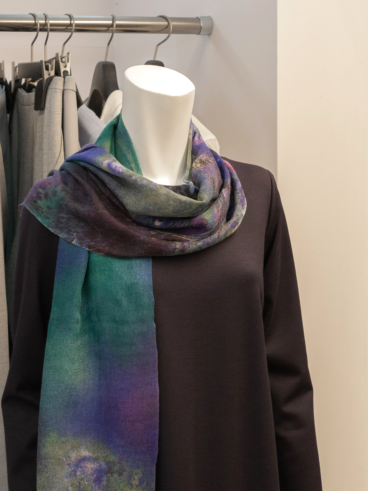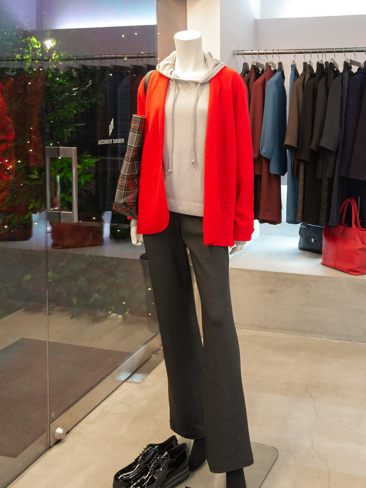 ジャージニットのジャケットは、サラッと羽織る大人カジュアルの装いをランクアップしました。