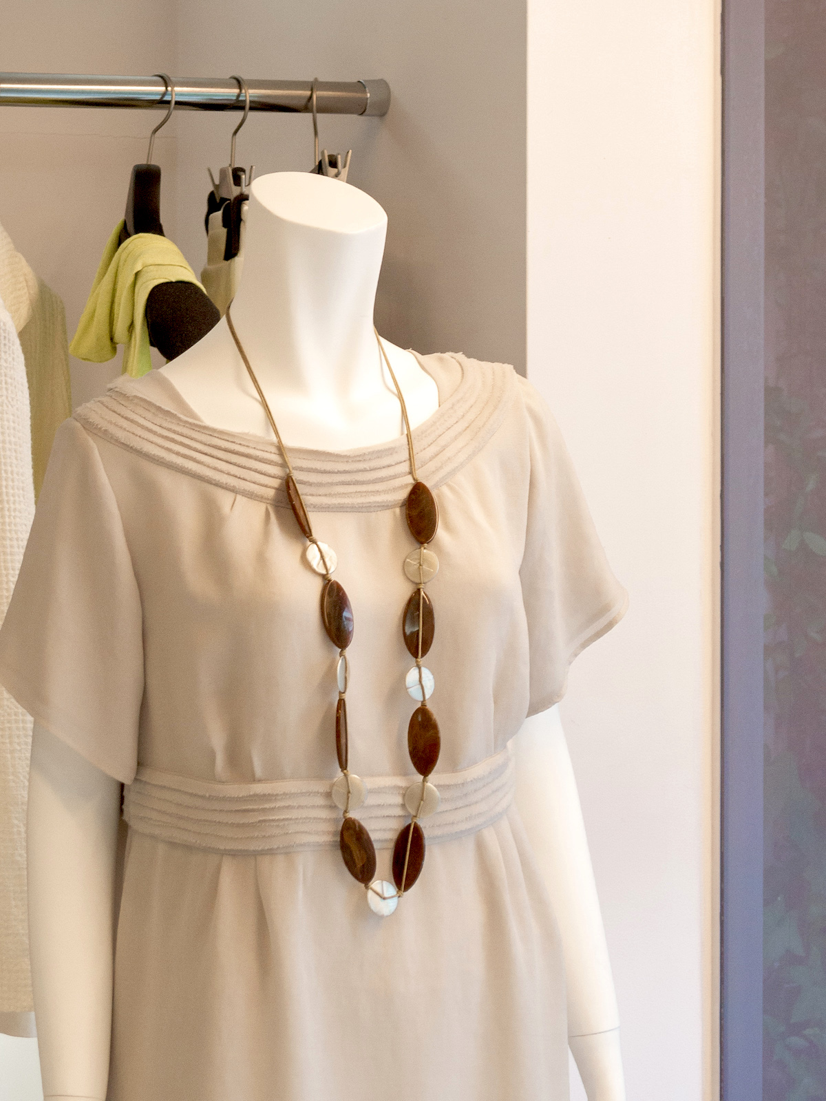 柔らかなジョーゼット風の、見た目にも暑さを忘れさせてくれそうなチュニックワンピース。