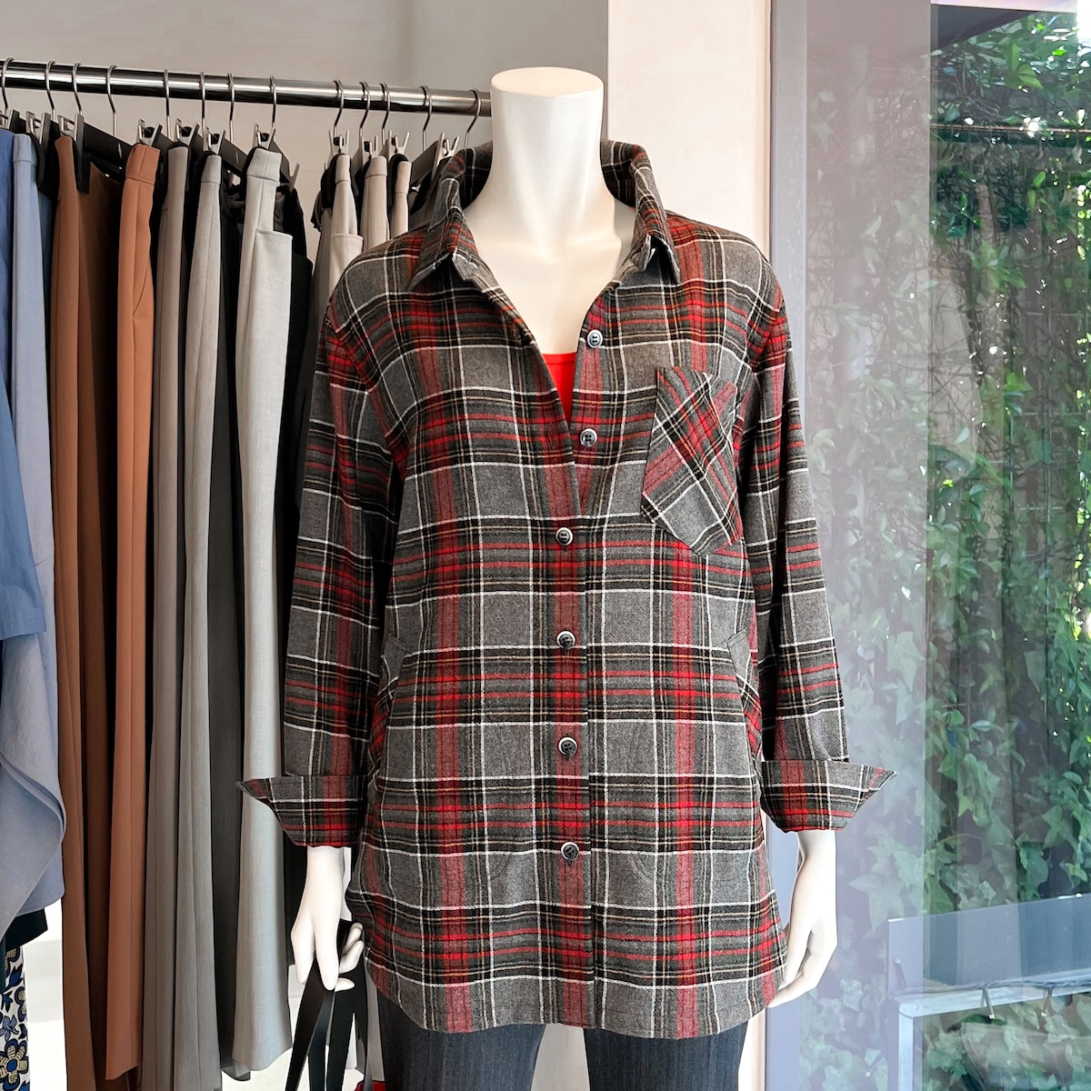 落ち着いたデザイン、上品な大人の着こなしでお仕事や学校でのお集まりなど、きちんとしたいときのセットアップ。